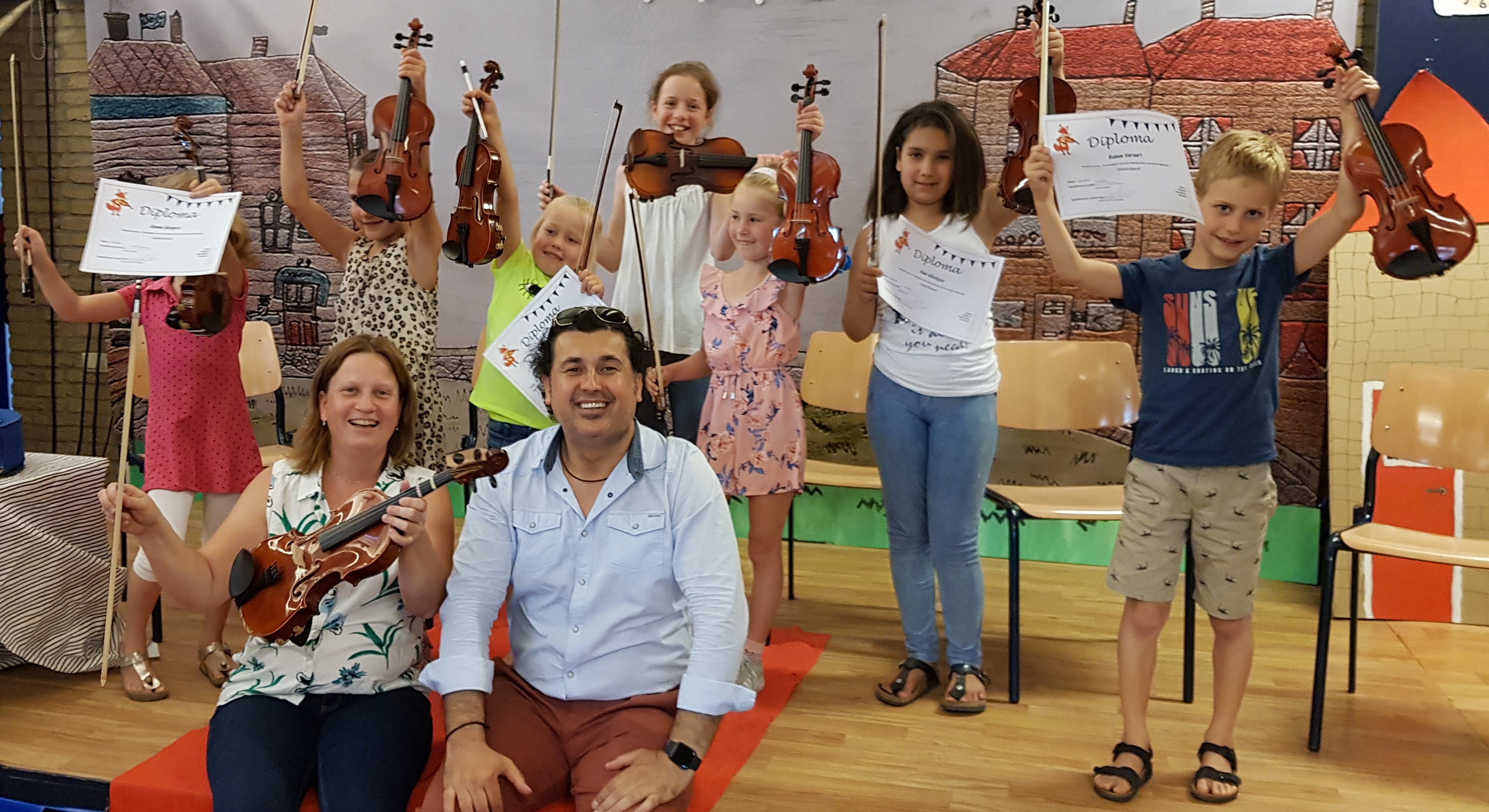 De tweede groep bestond uit de leerlingen viool die de introductiecursus gevolgd hadden bij docent Govar Hamid. De leerlingen hebben gezorgd voor een echt concertje, door liedjes uit het boek ‘Fiddle Time Joggers’ te spelen. De middag werd feestelijk afgesloten met de uitreiking van de welverdiende diploma’s en een gezellige nazit met limonade. Evenals bij de cellocursus zullen alle leerlingen na de zomervakantie doorgaan met een vervolgcursus. Als Stichting zijn wij hier erg blij mee!