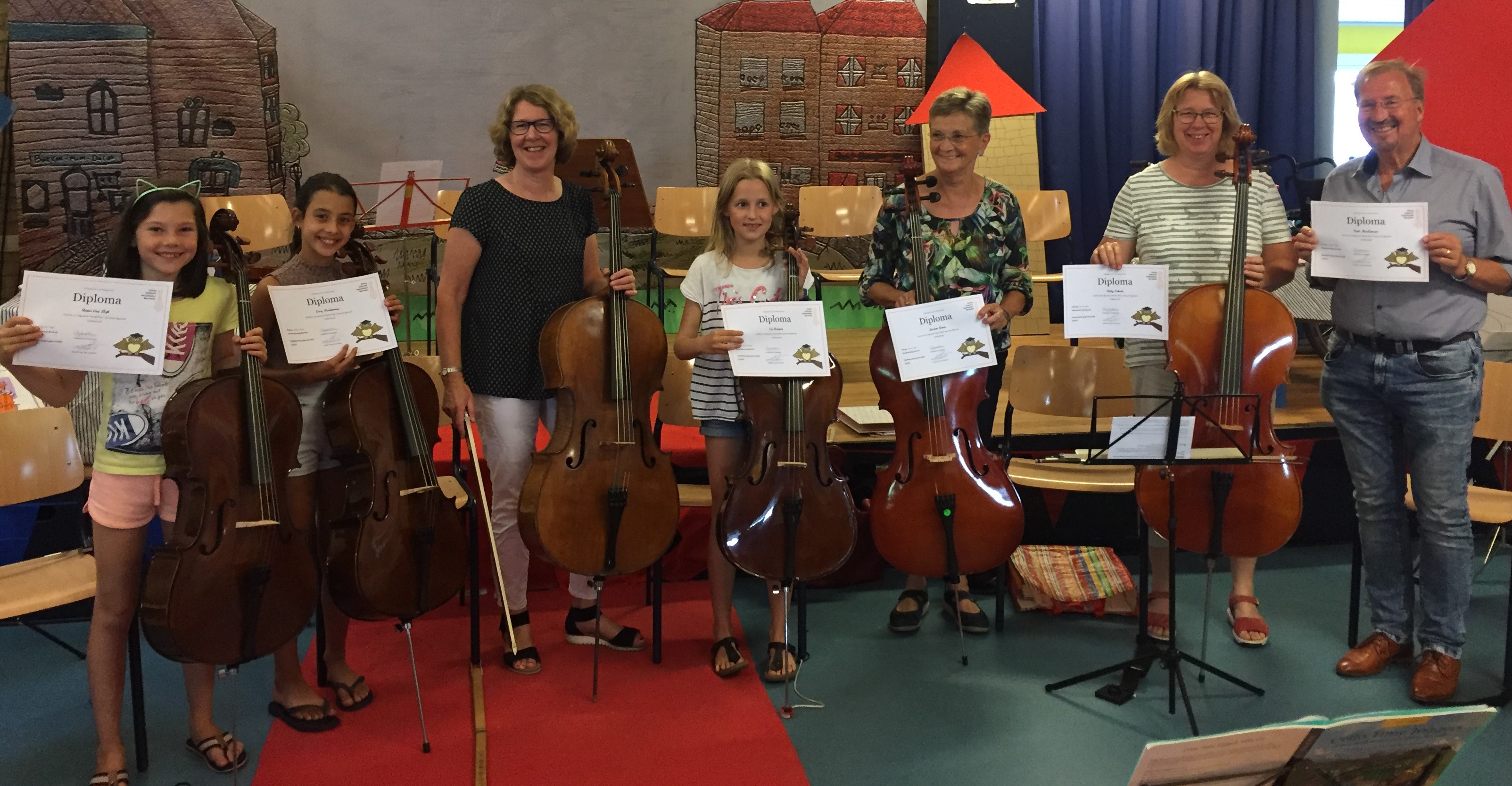 Woensdagmiddag 3 juli 2019, een speciale middag voor de cursisten van de projecten ‘Viool- en Cellospelen voor een Slimmer Kind’. Ouders, oma’s en opa’s en bekenden vormden het publiek tijdens deze laatste bijeenkomst van beide cursussen.